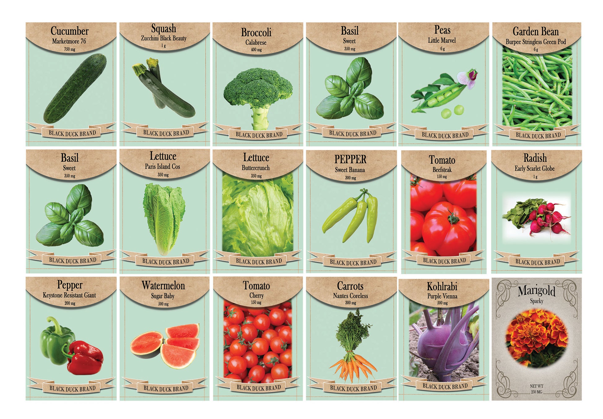 - 15 Varieties of Premium Seeds: Includes a diverse selection of non-GMO heirloom varieties including tomatoes, peppers, lettuce, radish, watermelon, broccoli, beans, zucchini, carrot, cucumber, and marigolds. A complete set for your classic garden!