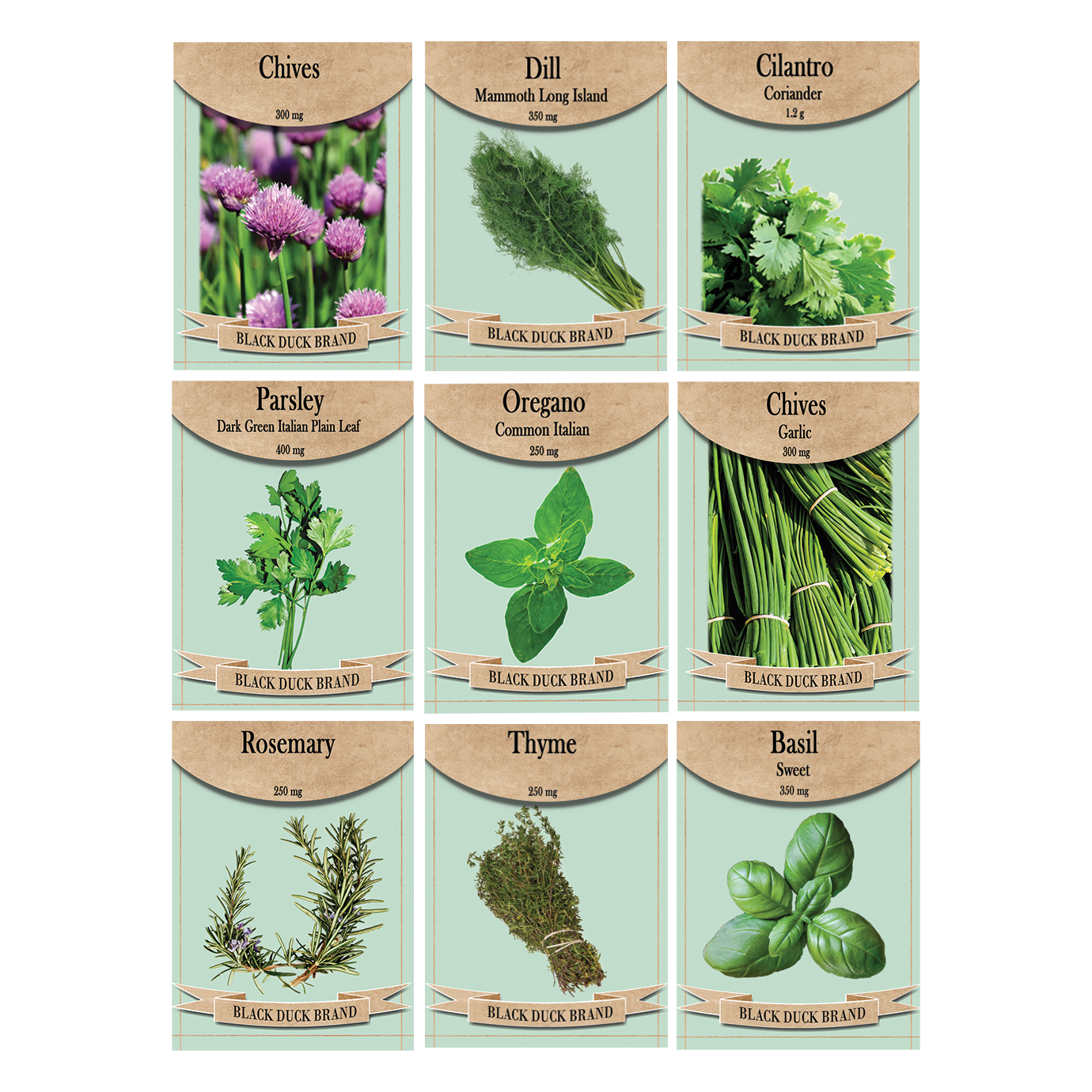 - Grow Your Own Garden! Set Features: Thyme, Sweet Basil, Chives, Rosemary, Cilantro, Chives, Dill, Oregano, and Parsley Seeds!