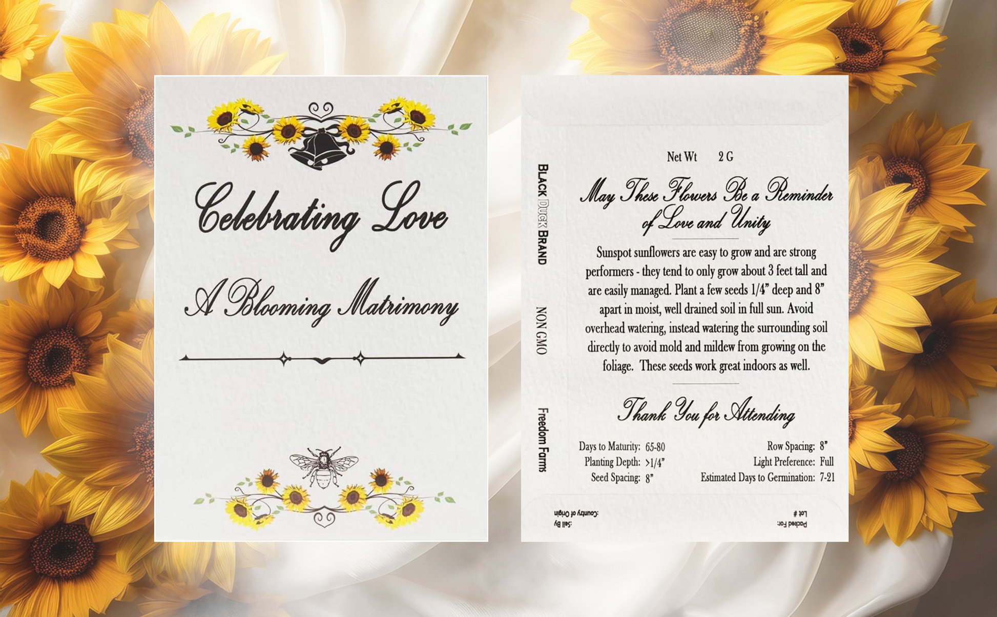 Sunflower Wedding Favor Seed Packets – 'Celebrating Love' & 'A Blooming Matrimony' – Meaningful Guest Keepsakes