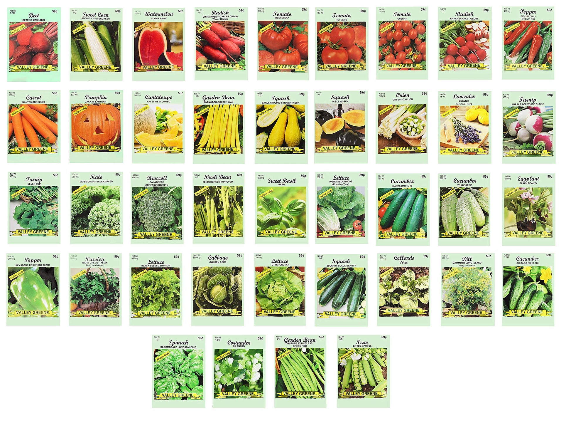 - Includes 40 Packs of Assorted Heirloom Vegetable and Herb Seeds